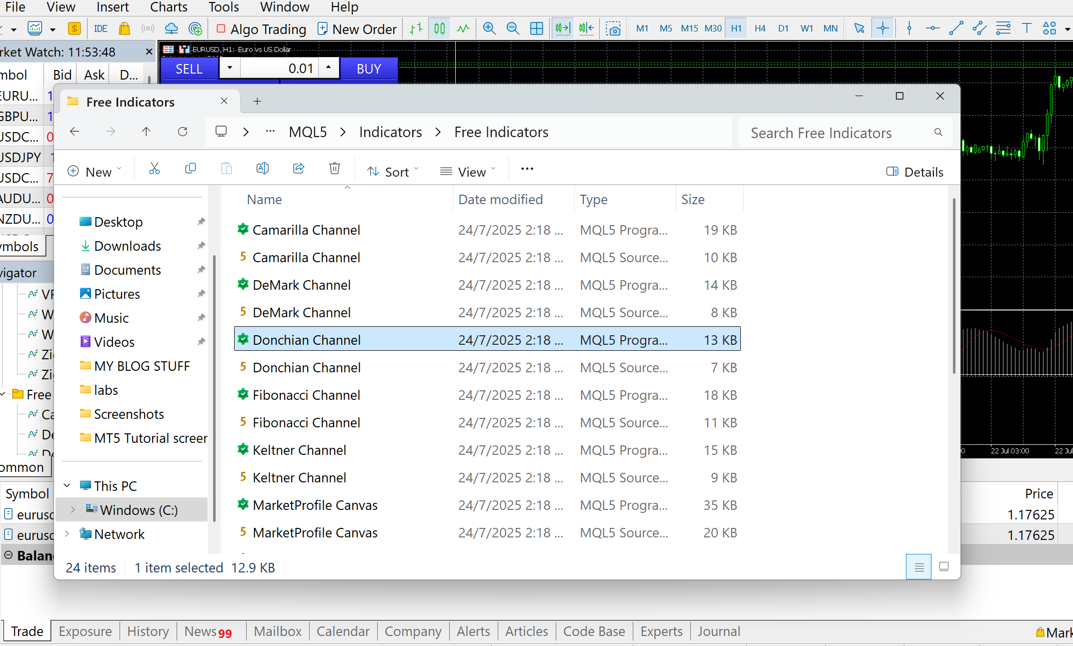4. Select the indicator you want to install. Then double-click the MQL5 program file.