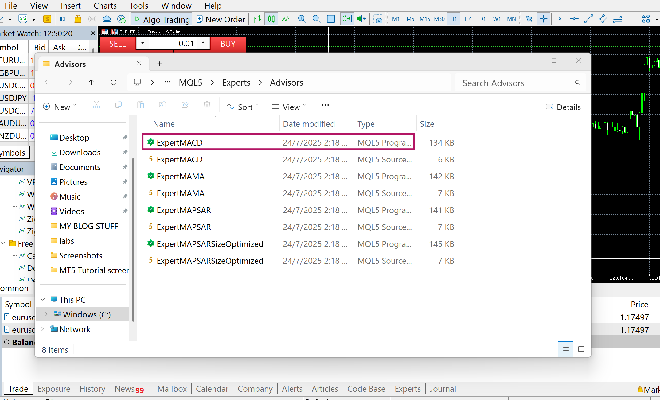 3. Select the EA you want to install, and double click the MQL5 Program file.