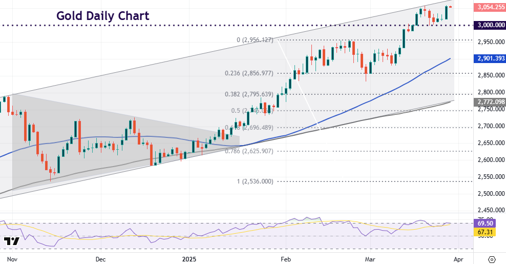 After recent consolidation above $3000, gold bugs pushed prices to record highs once again. There is obviously much uncertainty in markets surrounding tariffs and future Trump policies. That goes for increasing geopolitical risks too, which have seen the prospect of rate cuts by major central banks remain in the pipeline. Central banks are still stocking up on supply, with the PBoC resuming buying a few months ago. Robust ETF demand also continues to support prices. Goldman Sachs recently raised its year-end 2025 projection to $3,300 citing stronger than expected ETF and central bank buying. Bullion remains in a long-term uptrend near the top of the channel.