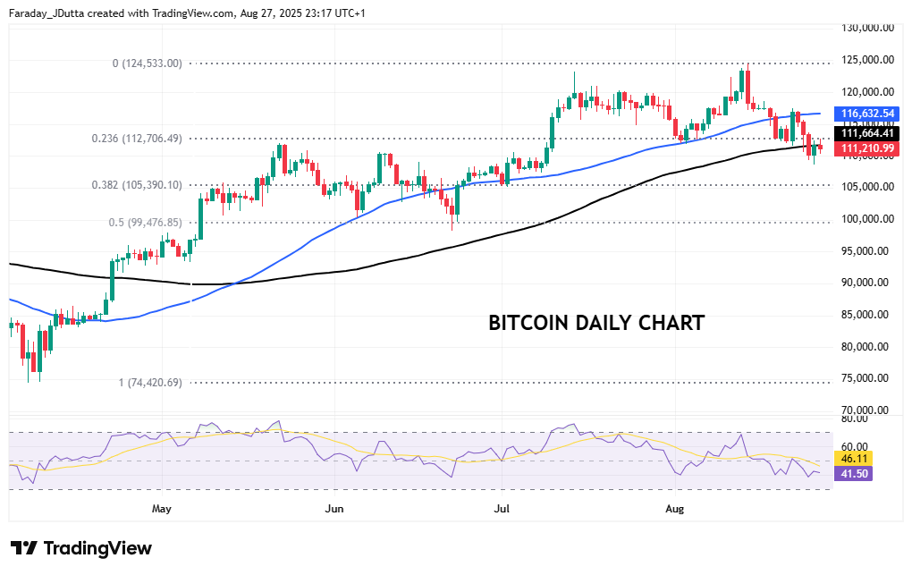 The world’s most popular cryptocurrency has disappointed since breaking higher to a record peak at $124,533 in the middle of the month. But that top saw the biggest one-day sell-off since early April, with the spike high on the weekly chart along with that in mid-July, looking bearish. Bitcoin traditionally sees its smallest gains in September, a month that the crypto has never finished more than 8% higher. There could be some front running ahead of this, while profit taking, large-scale whale selling and liquidations have caused the move to the downside. Prices currently trade around the 100-day SMA at $111,665. A major Fib level (38.2%) of the April to August move sits at $105,390. Upside levels include the 50-day SMA at $116,633 and the minor retracement level of that multi-month move at $112,706.