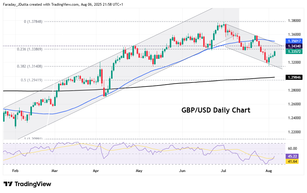 As above, cable has been the big underperformer in recent weeks, on dollar strength and traders eyeing up the worsening domestic finances and Autumn fiscal black holes. Prices touched a major Fib retracement level (38.2%) of this year’s rally at 1.3140. We’ve seen four straight days if buying, driven by the big dollar sell-off and bullish outside reversal day after last Friday’s NFP data. Resitance above is a zone aorund 1.3386/1.3434. The 50-day SMA is above here at 1.3501.